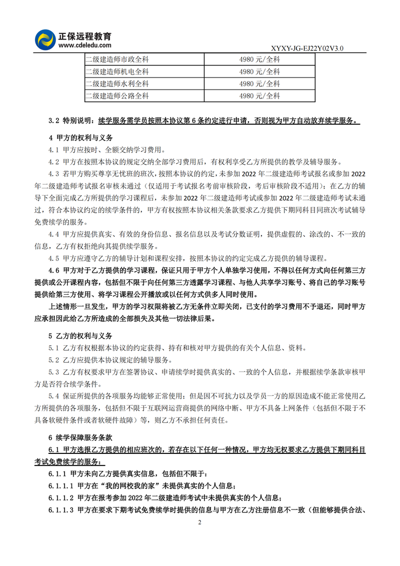 2022年二級建造師尊享無憂班協(xié)議書