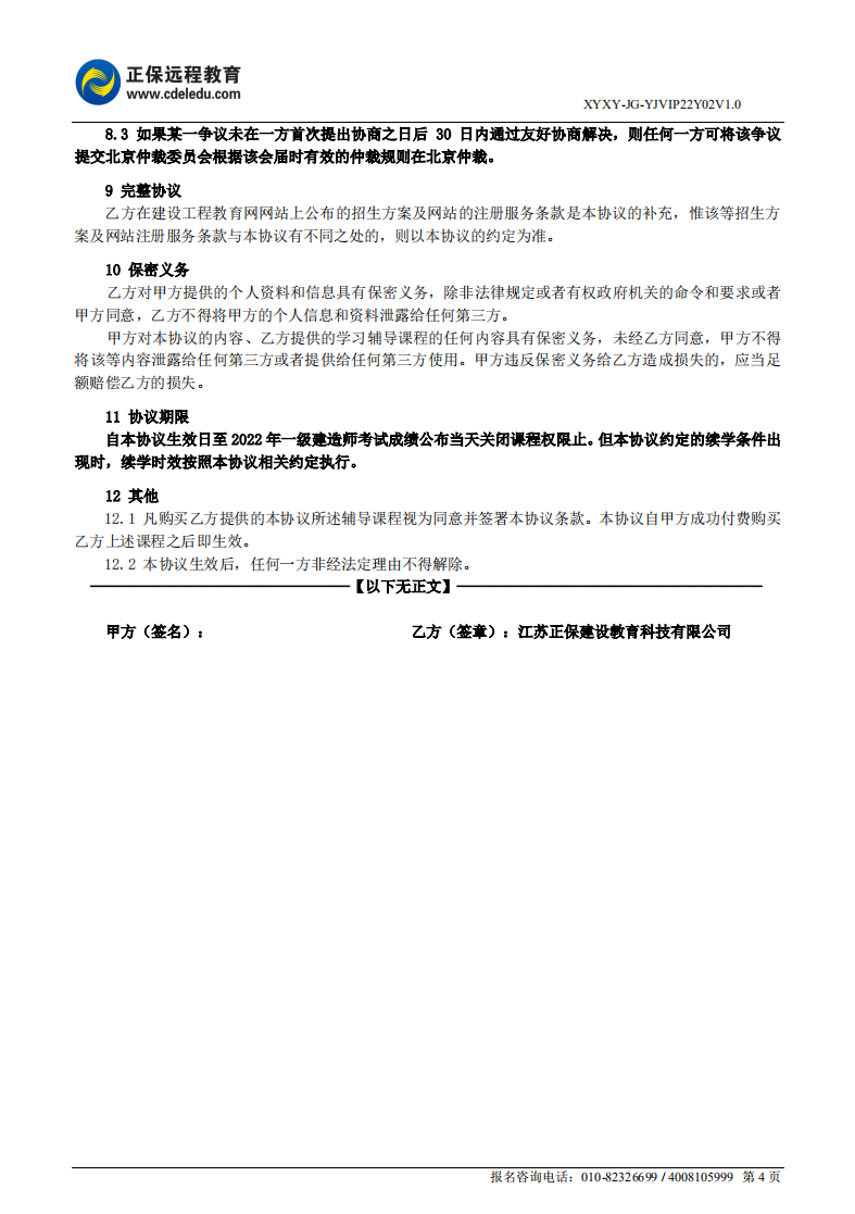 2022年一級建造師VIP特訓(xùn)營(單科)協(xié)議書