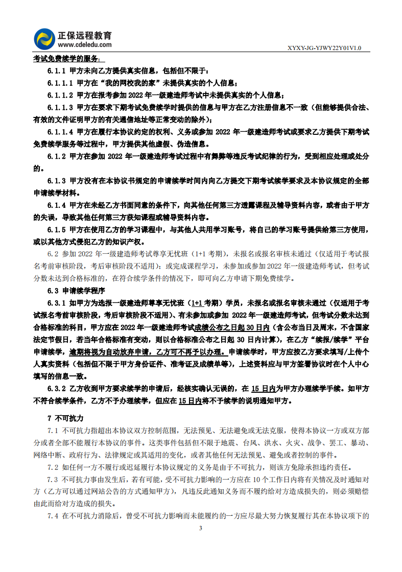 2022年一級建造師尊享無憂班續(xù)學協(xié)議書