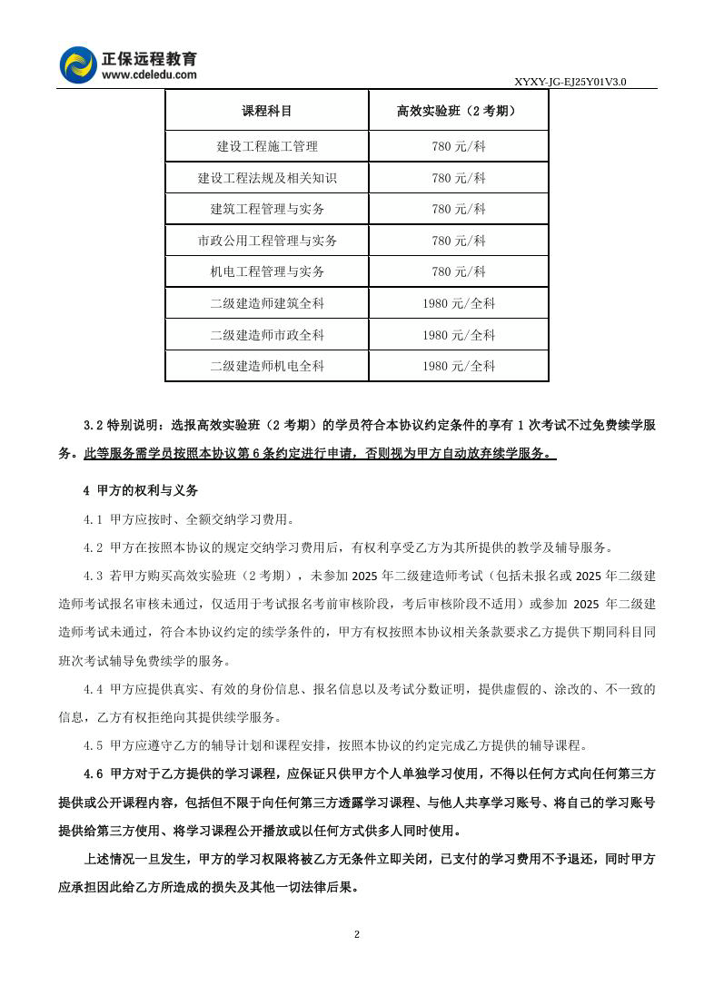 2025年二級(jí)建造師高效實(shí)驗(yàn)班(2考期)協(xié)議書(shū)