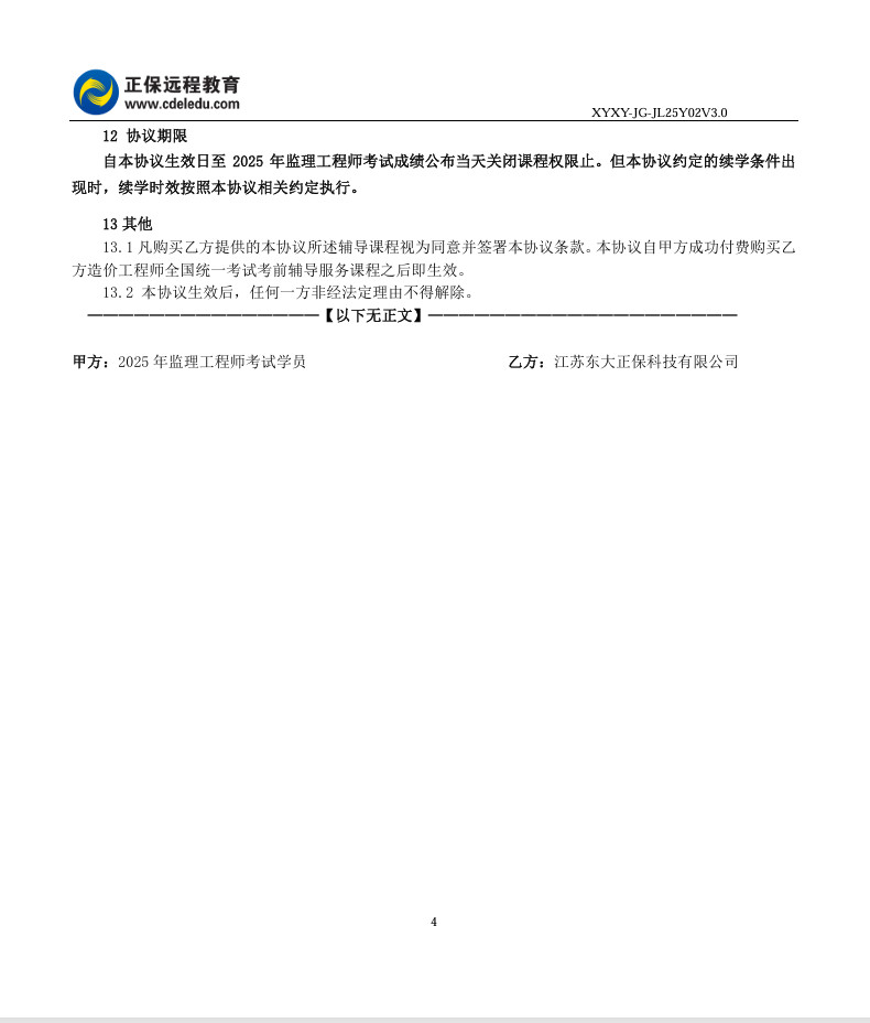 2025年監(jiān)理工程師協(xié)議書