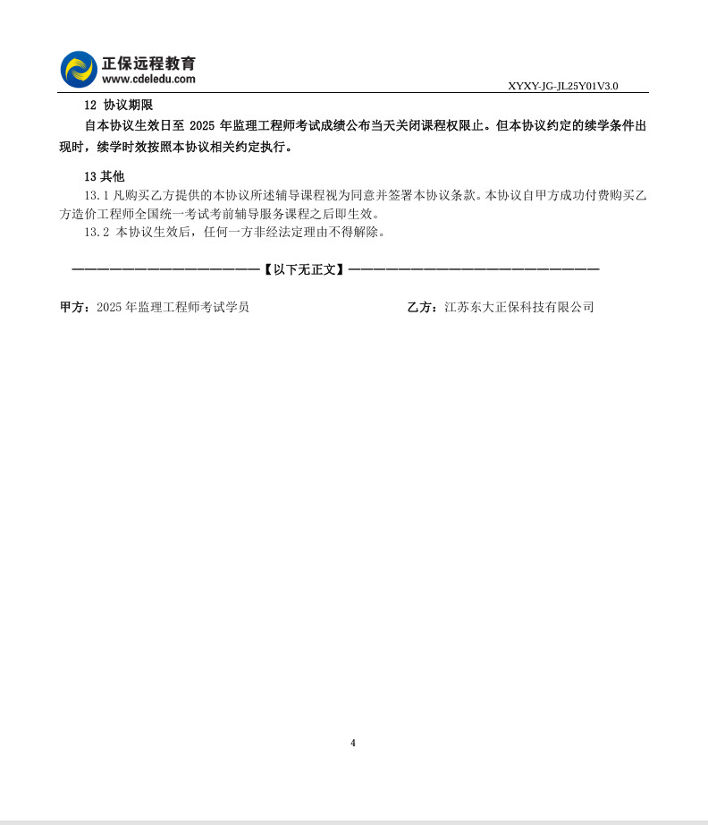 2025年監(jiān)理工程師協(xié)議書