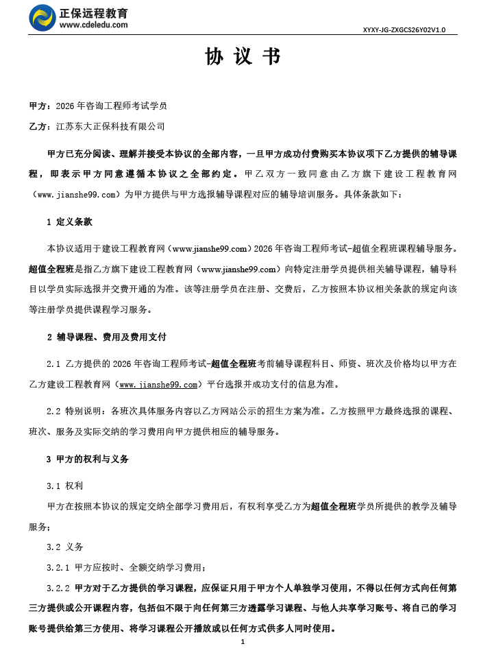 咨詢工程師超值全程班協(xié)議書