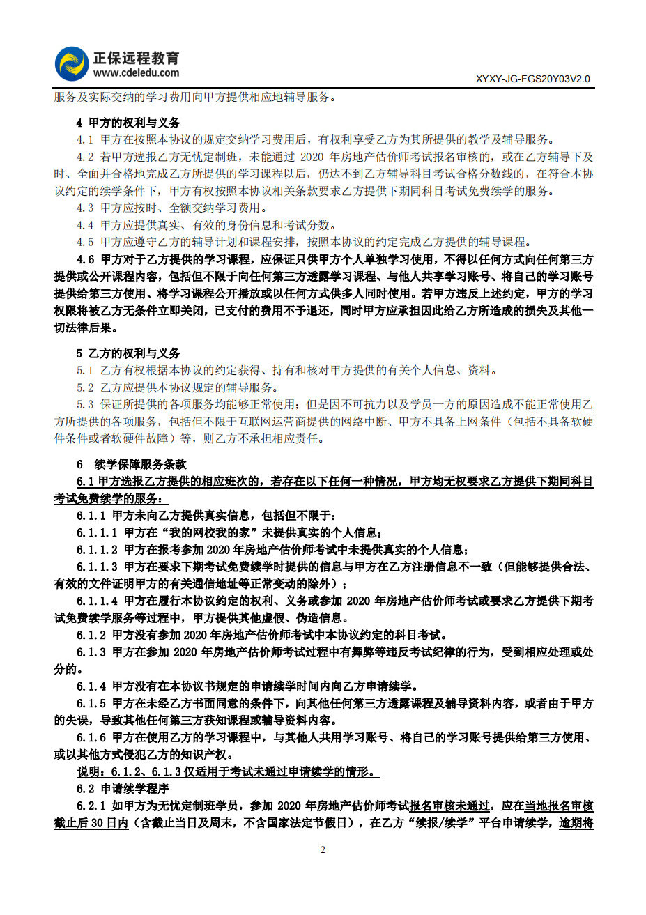 2020年房地產(chǎn)估價(jià)師無憂定制班協(xié)議書