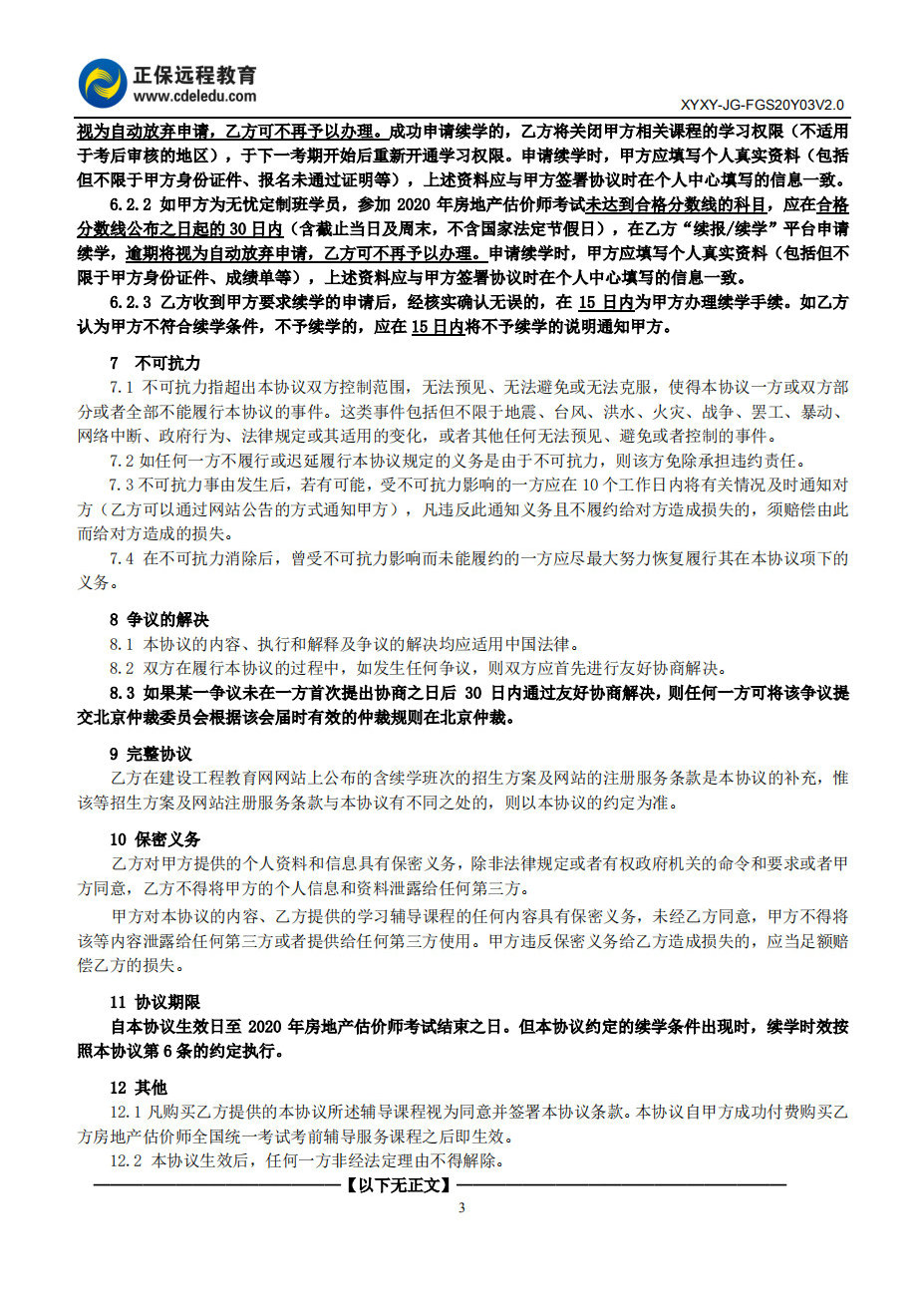 2020年房地產(chǎn)估價(jià)師無(wú)憂定制班協(xié)議書