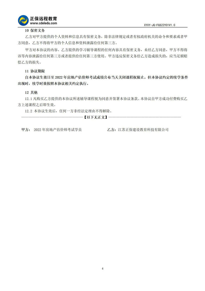 2022年房地產(chǎn)估價師高效實驗班協(xié)議書