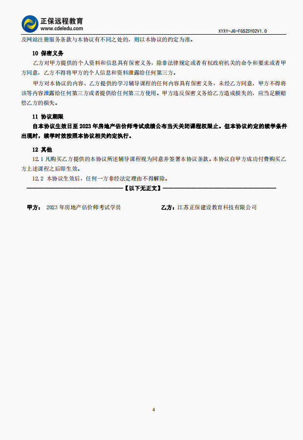 2023年房地產(chǎn)估價師尊享無憂班協(xié)議書