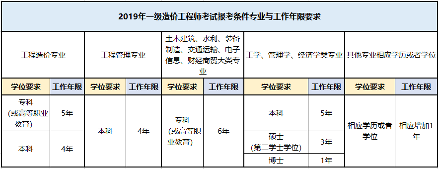 湖北武漢2019年一級造價工程師考試需要幾年工作經(jīng)驗?