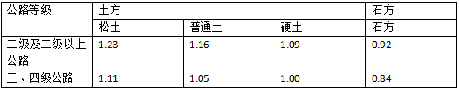 1.土石方的六級(jí)分類主要在土方換算中應(yīng)用,根據(jù)工程量的計(jì)算規(guī)則,不同等級(jí)不同類別的土石方,在天然密實(shí)體積和壓實(shí)體積換算時(shí)要進(jìn)行系數(shù)換算。具體系數(shù)調(diào)整如下: