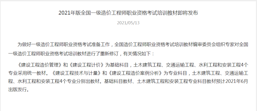 2021年一造考試教材什么時間出版?