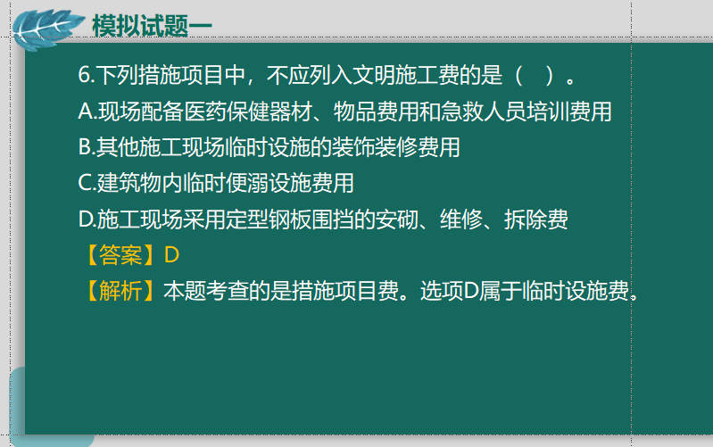 【試題4】根據(jù)我國現(xiàn)行建筑安裝工程費用構(gòu)成,下列費用中屬于安全文明施工費的是( )。