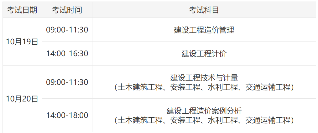 1、考前一定要確認好各科目考試時間,2024年考試時間10月19日-20日,具體考試科目如下: