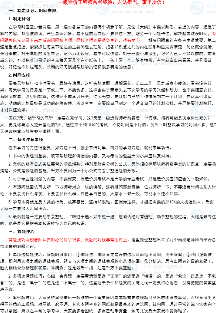 一級(jí)造價(jià)工程師備考經(jīng)驗(yàn):方法得當(dāng),事半功倍!