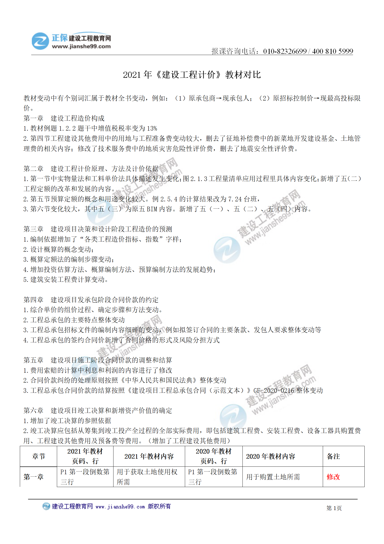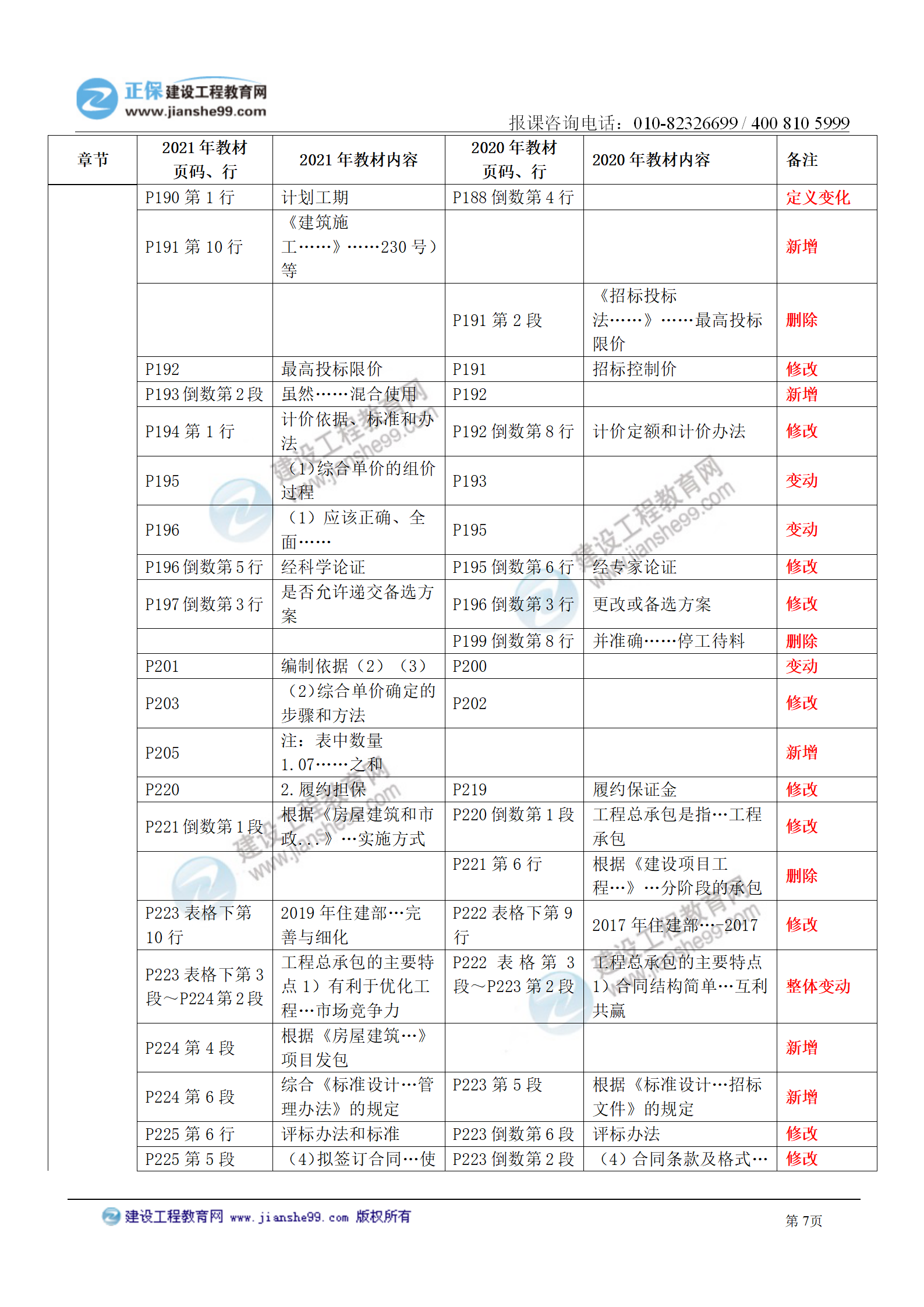 2021年一級(jí)造價(jià)師《建設(shè)工程計(jì)價(jià)》教材變化對(duì)比