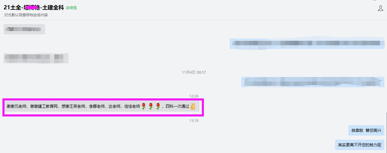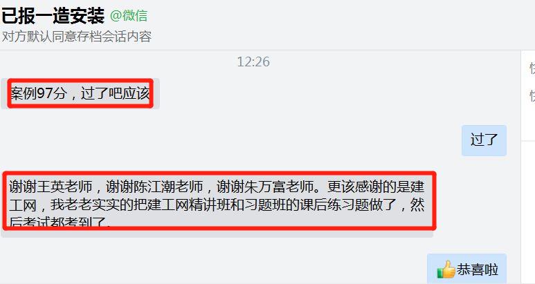 群里呼聲一片,看到大家能順利上岸,對網(wǎng)校老師也是稱贊連連,這就是我們收到的最好的禮物,同時也恭喜大家順利拿下此次一級造價師考試。