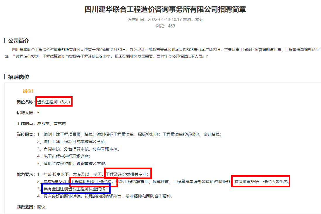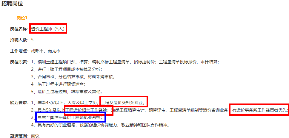 又開始招聘啦!需要有造價行業(yè)相關(guān)工作經(jīng)驗(yàn)的人員,要具有一級造價師證書,過了一級造價工程師考試的朋友快來看看有沒有適合你的崗位吧!