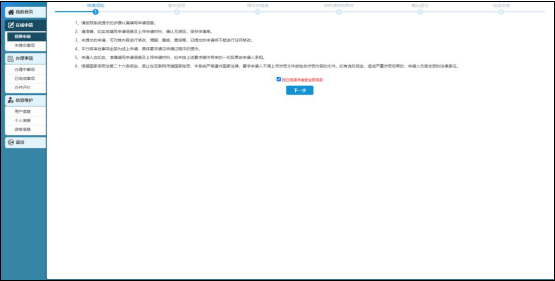 閱讀申請須知后點擊接受條款并進行下一步。