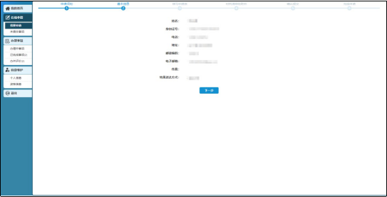 進入基本信息頁面,確認(rèn)申報人基本信息,點擊下一步。