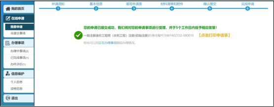 申請?zhí)峤缓笞罱K進入完成申請?zhí)崾卷摗?/p>