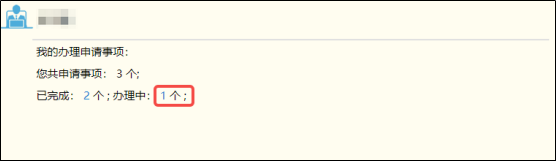 業(yè)務(wù)辦理進度查詢共有兩種方式,用戶可根據(jù)自己的使用習(xí)慣進行查詢。方法一:進入申報首頁后,查看左上角的辦理事項申請欄將鼠標(biāo)放到申請事項類型的數(shù)字上,點擊可跳轉(zhuǎn)頁面。