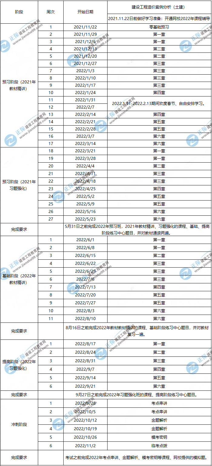 一造土建案例預習計劃