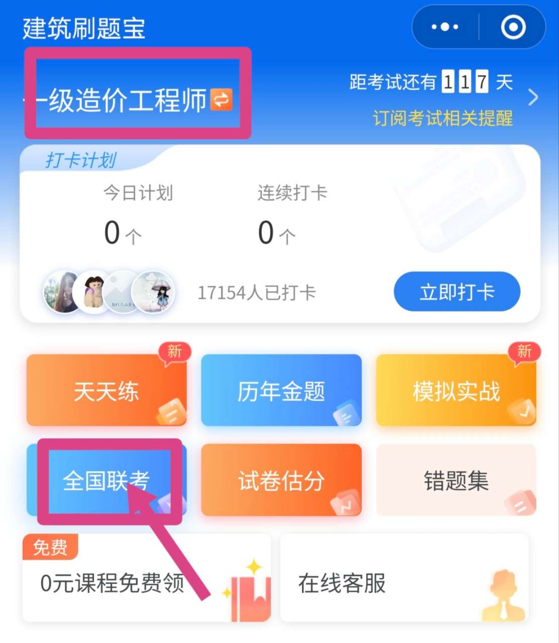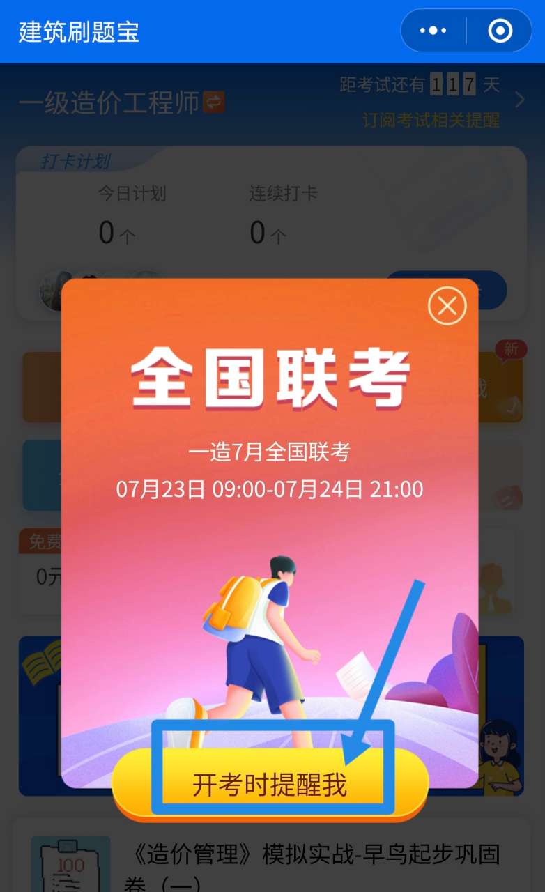 (3)進(jìn)入全國聯(lián)考后,點擊開考時提醒我,即可成功預(yù)約免費聯(lián)考。