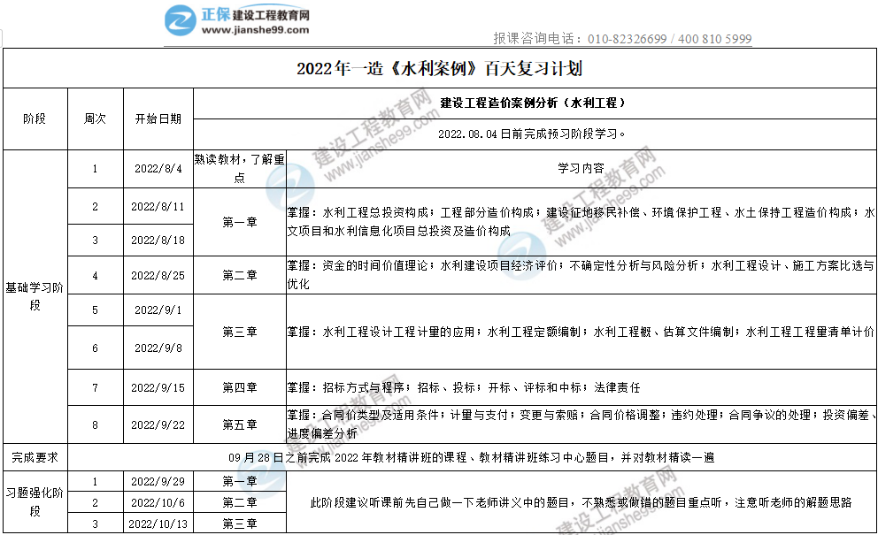 2022年一造《水利案例》百天復習計劃