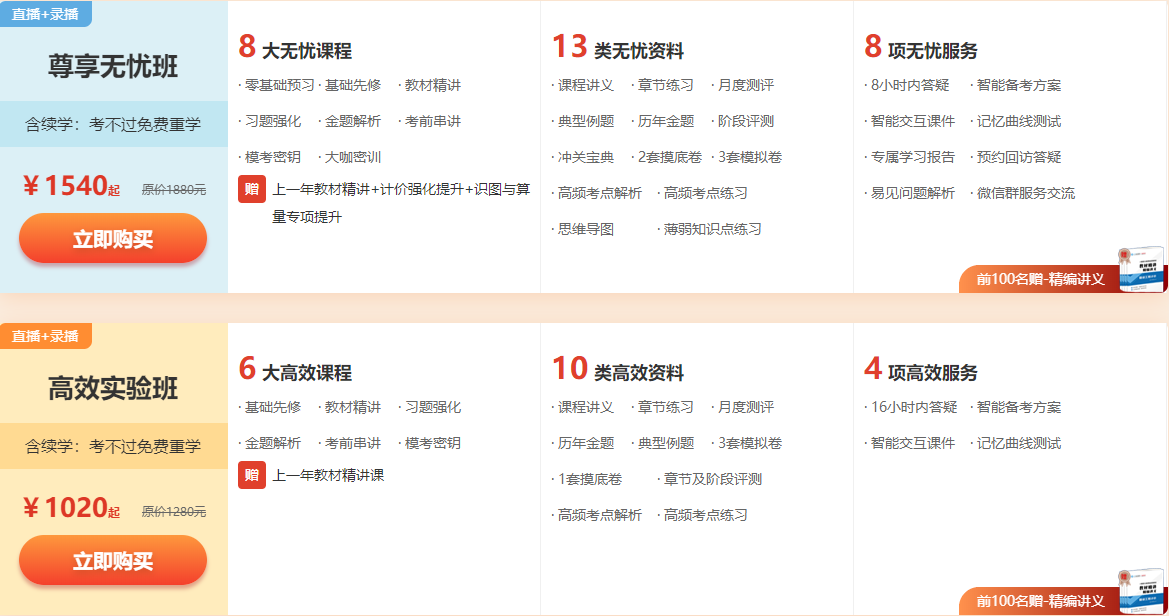 限時(shí)超值班、高效班、無憂班購課前100名學(xué)員,贈(zèng)精編講義(紙質(zhì)版)