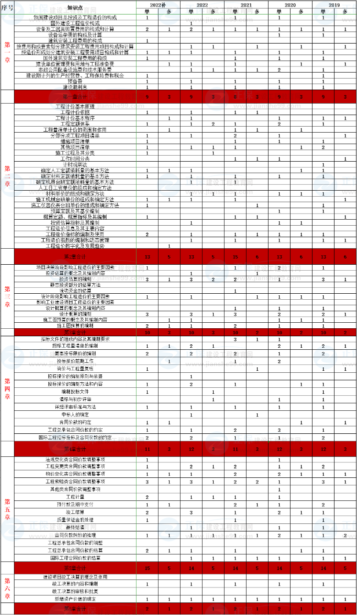 一級(jí)造價(jià)師工程計(jì)價(jià)歷年各章節(jié)分值分布!