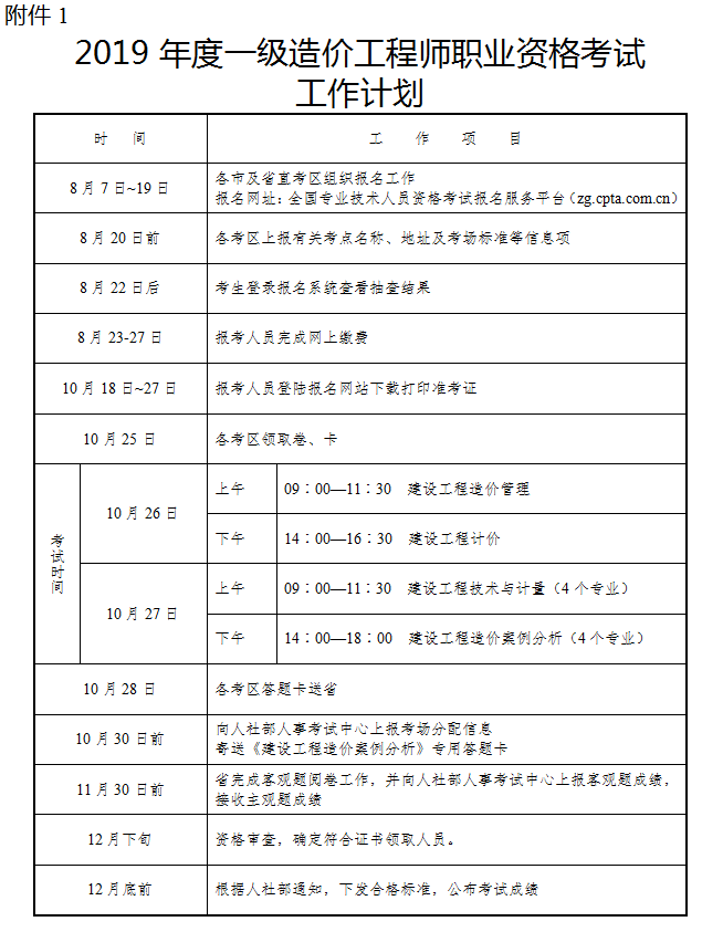 省人力資源社會(huì)保障廳 省住房城鄉(xiāng)建設(shè)廳關(guān)于2019年度一級(jí)造價(jià)工程師職業(yè)資格考試工作有關(guān)事項(xiàng)的通知