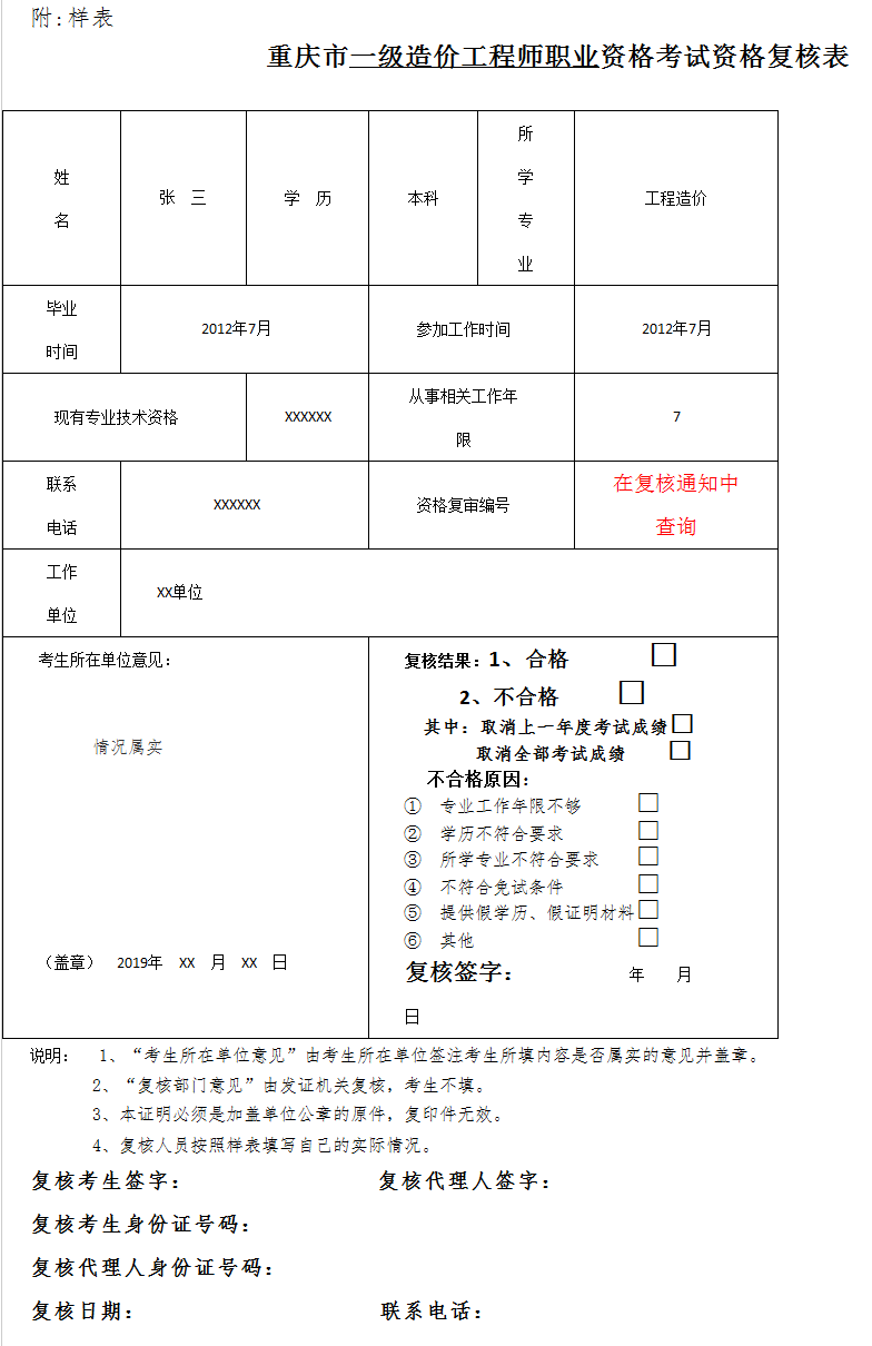 2019年重慶一級(jí)造價(jià)工程師職業(yè)資格考試資格復(fù)核的通知