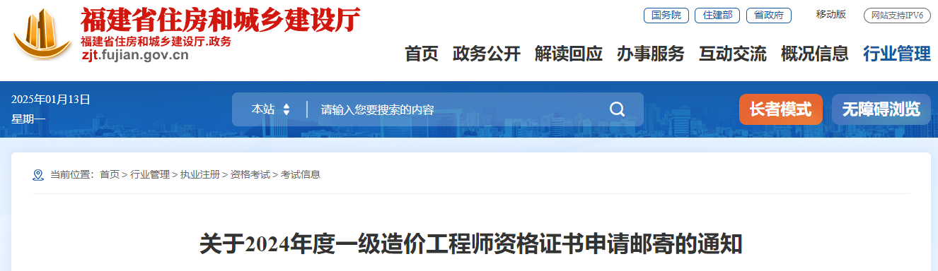 福建省關(guān)于2024年一級(jí)造價(jià)工程師資格證書申請(qǐng)郵寄的通知