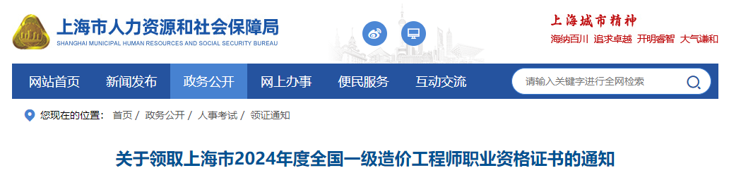 關(guān)于領(lǐng)取上海市2024年一級(jí)造價(jià)工程師職業(yè)資格證書(shū)的通知