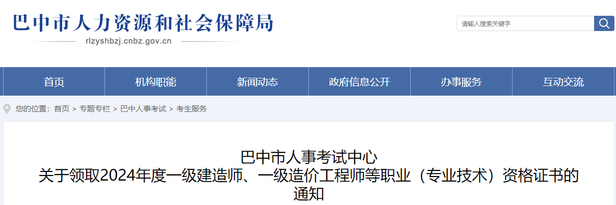關(guān)于領(lǐng)取2024年四川巴中一級造價工程師職業(yè)資格證書的通知