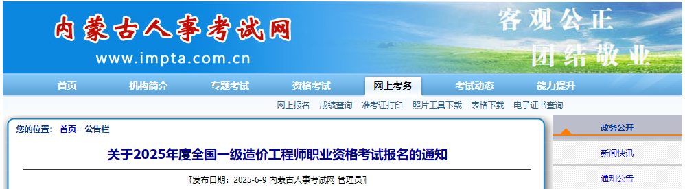 2025年度內(nèi)蒙古考區(qū)一級造價工程師職業(yè)資格考試報名通知