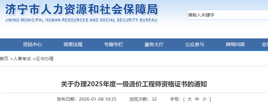山東濟(jì)寧關(guān)于辦理2025年度一級(jí)造價(jià)工程師資格證書的通知