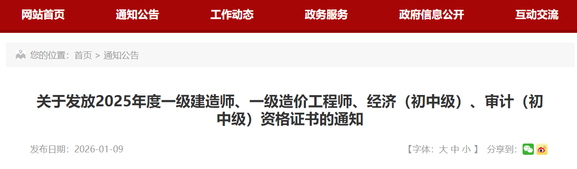 關(guān)于發(fā)放2025年度一級建造師、一級造價工程師、經(jīng)濟(初中級)、審計(初中級)資格證書的通知