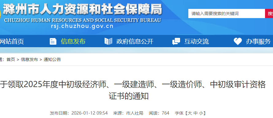 安徽省滁州市2025年一級造價師證書領(lǐng)取通知