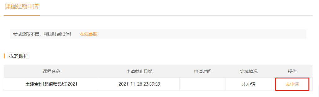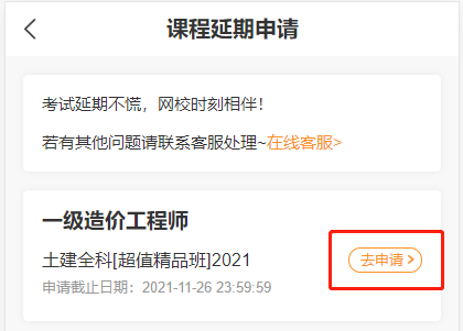 課程延期申請時(shí)間:10月26日至11月27日23:59:59