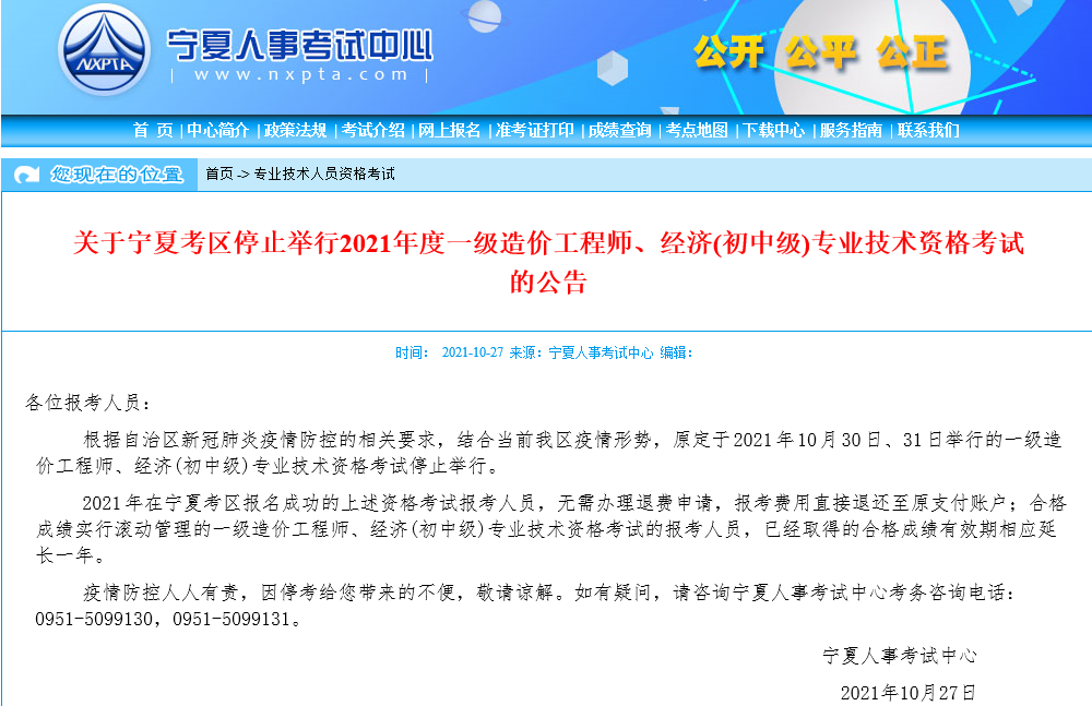 2021年一級造價師考試即將來臨,原定寧夏2021年一級造價師考試時間在2021年10月30日-2021年10月31日,但是因為疫情,寧夏人事考試中心發(fā)布2021年一級造價師??纪ㄖ?,并且提示2021年在寧夏考區(qū)報名成功的一級造價師考試報考人員,無需辦理退費申請,報考費用直接退還至原支付賬戶;合格成績實行滾動管理的一級造價工程師考試的報考人員,已經取得的合格成績有效期相應延長一年。