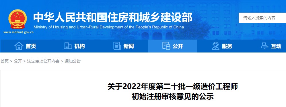 住建部關(guān)于2022年度第二十批一級(jí)造價(jià)工程師初始注冊(cè)審核意見的公示
