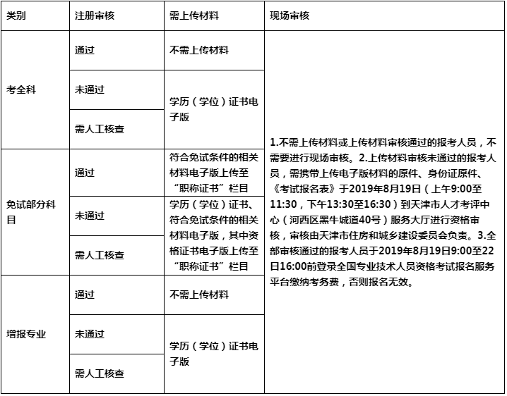 備注:(1)2019年8月6日9:00至8月15日16:00登錄全國(guó)專(zhuān)業(yè)技術(shù)人員資格考試報(bào)名服務(wù)平臺(tái)進(jìn)行上傳相關(guān)資料電子版,審核部門(mén)將于2019年8月12日9:00開(kāi)始對(duì)上傳材料進(jìn)行審核。