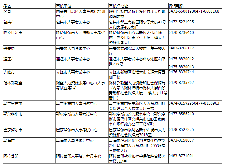 附件 區(qū)直及各盟市資格審核部門聯(lián)系方式