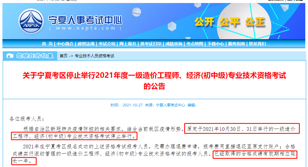 關(guān)于寧夏考區(qū)停止舉行2021年度一級(jí)造價(jià)工程師、
