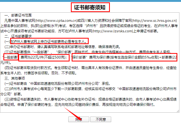 3、仔細(xì)閱讀證書郵寄須知,讀完之后點擊同意;