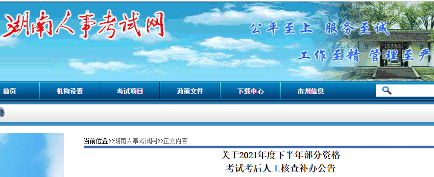 (四)人工核查結(jié)果公示。市州要及時(shí)在相關(guān)網(wǎng)站公示人工核查結(jié)果,接受舉報(bào)并查實(shí)。經(jīng)公示無異議的成績合格人員的證書領(lǐng)取事宜在“湖南人事考試網(wǎng)”和市州網(wǎng)站予以公告,請(qǐng)相關(guān)人員及時(shí)關(guān)注并按要求領(lǐng)取資格證書。