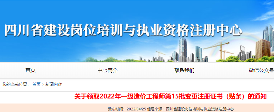 四川關(guān)于領(lǐng)取2022年一級造價師第15批變更注冊證書(貼條)的通知