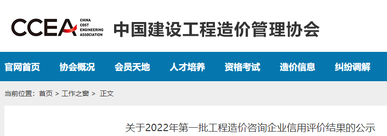 關(guān)于2022年第一批工程造價(jià)咨詢企業(yè)信用評(píng)價(jià)結(jié)果的公示