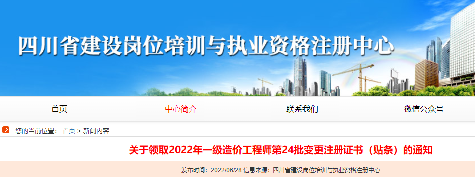 四川領(lǐng)取2022年一級(jí)造價(jià)工程師第24批變更注冊(cè)證書(shū)(貼條)的通知