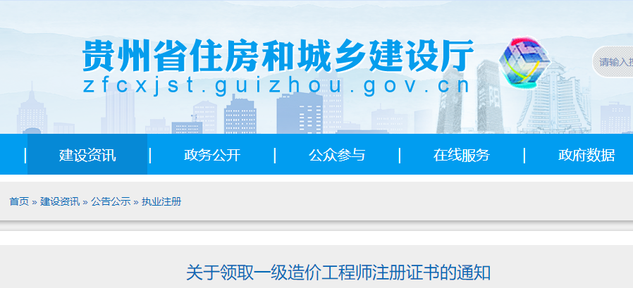 關(guān)于貴州領(lǐng)取一級造價工程師注冊證書的通知